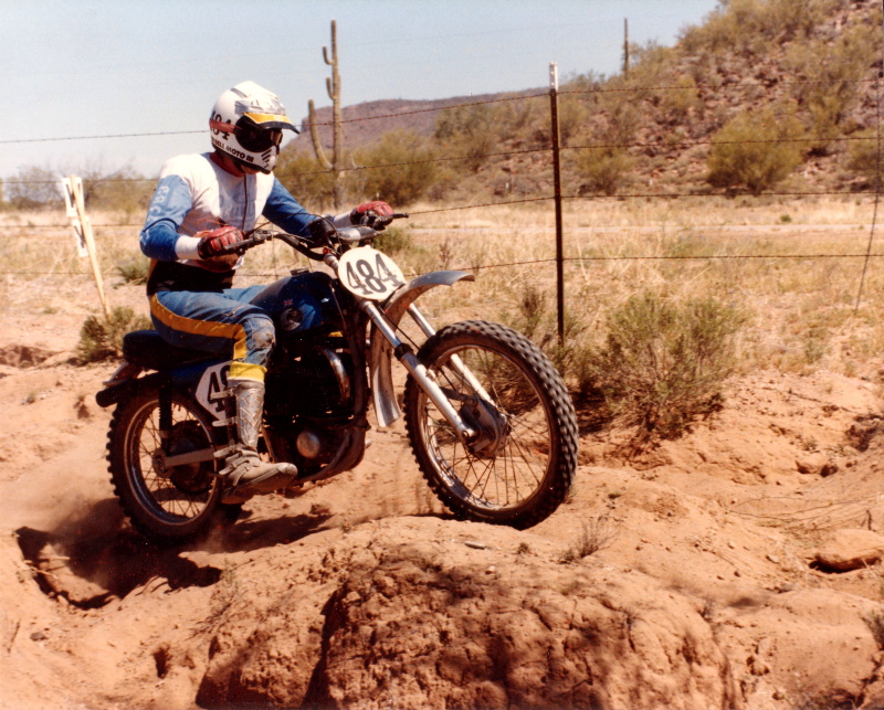 Boyd riding at Tucson 4th Annual GP - April, 1982. The bike is a 250 Griffon fitted with a 380 twin pipe engine. |