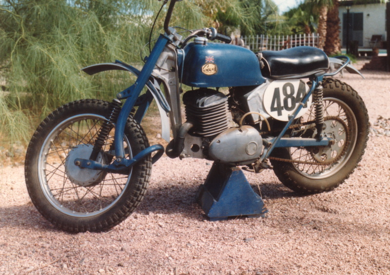 1967 MX5B Challenger. This one became my first Greeves. When I acquired it, it looked just like this with the same peeling 484 number plates. |