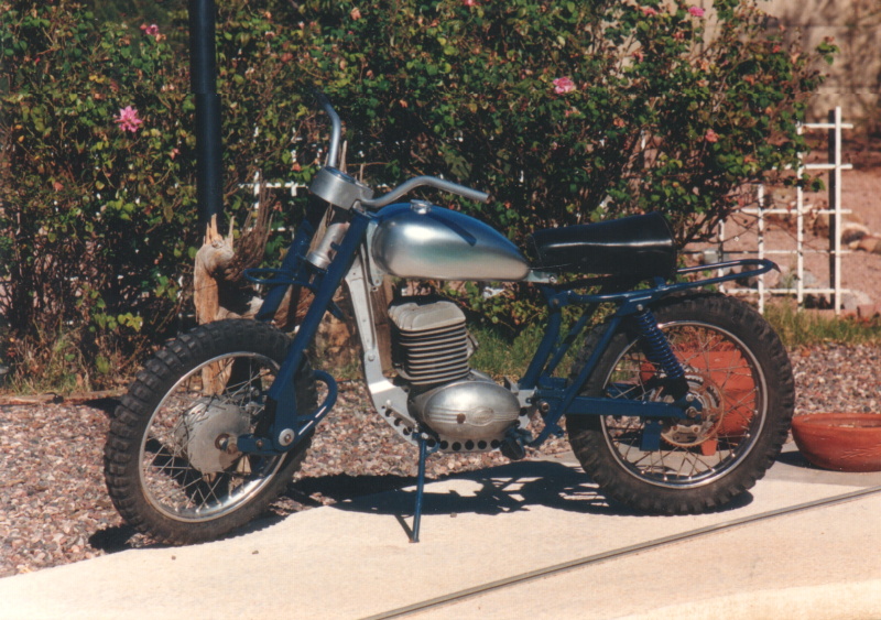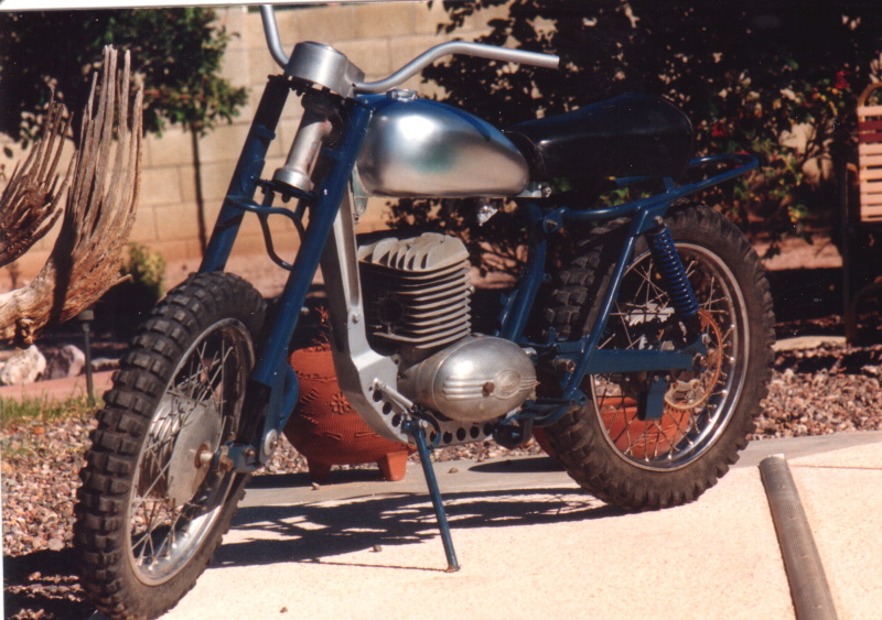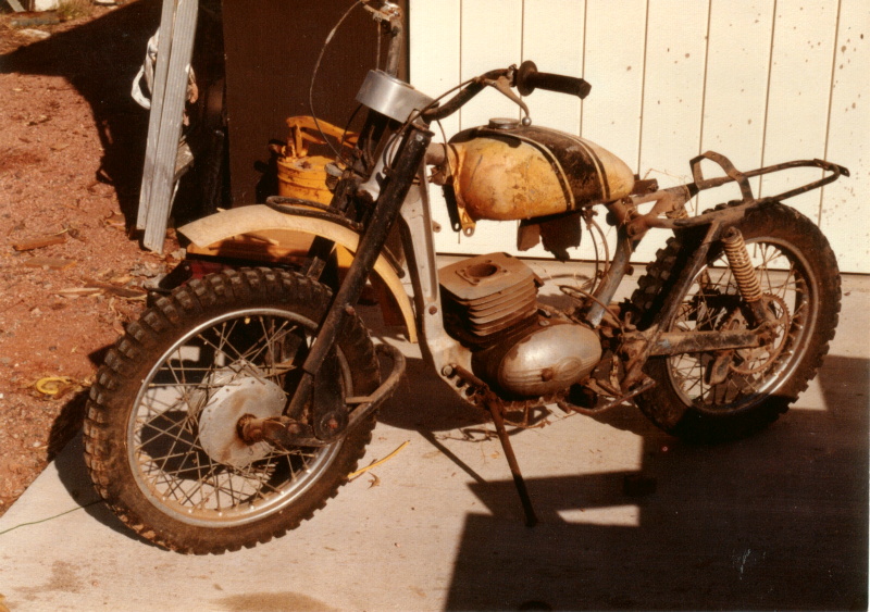 1965 TFS Trail bike. Partially restored by Boyd. This one came to my stable in December, 2002. It is in about the same state of completion, but has weathered considerably since this picture. |